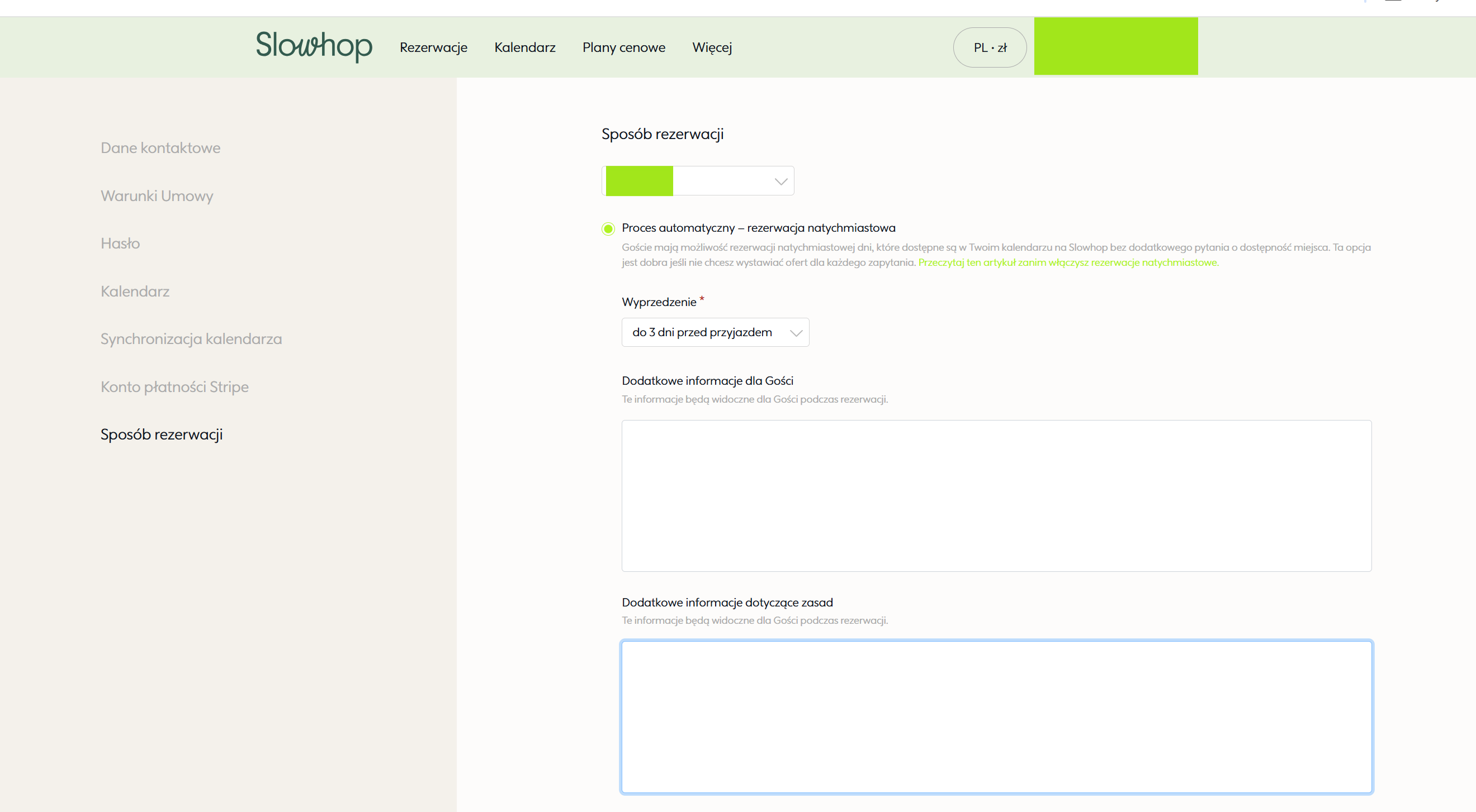 Rezerwacje natychmiastowe są domyślnym sposobem rezerwacji na Slowhop. Zastosujcie poniższe wskazówki aby uniknąć overbookingów.