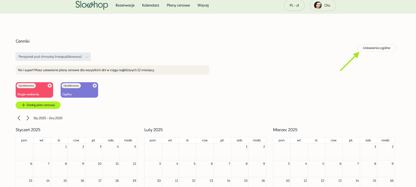 Przełączamy się w tryb Gospodarza i przechodzimy do zakładki Plany cenowe.
